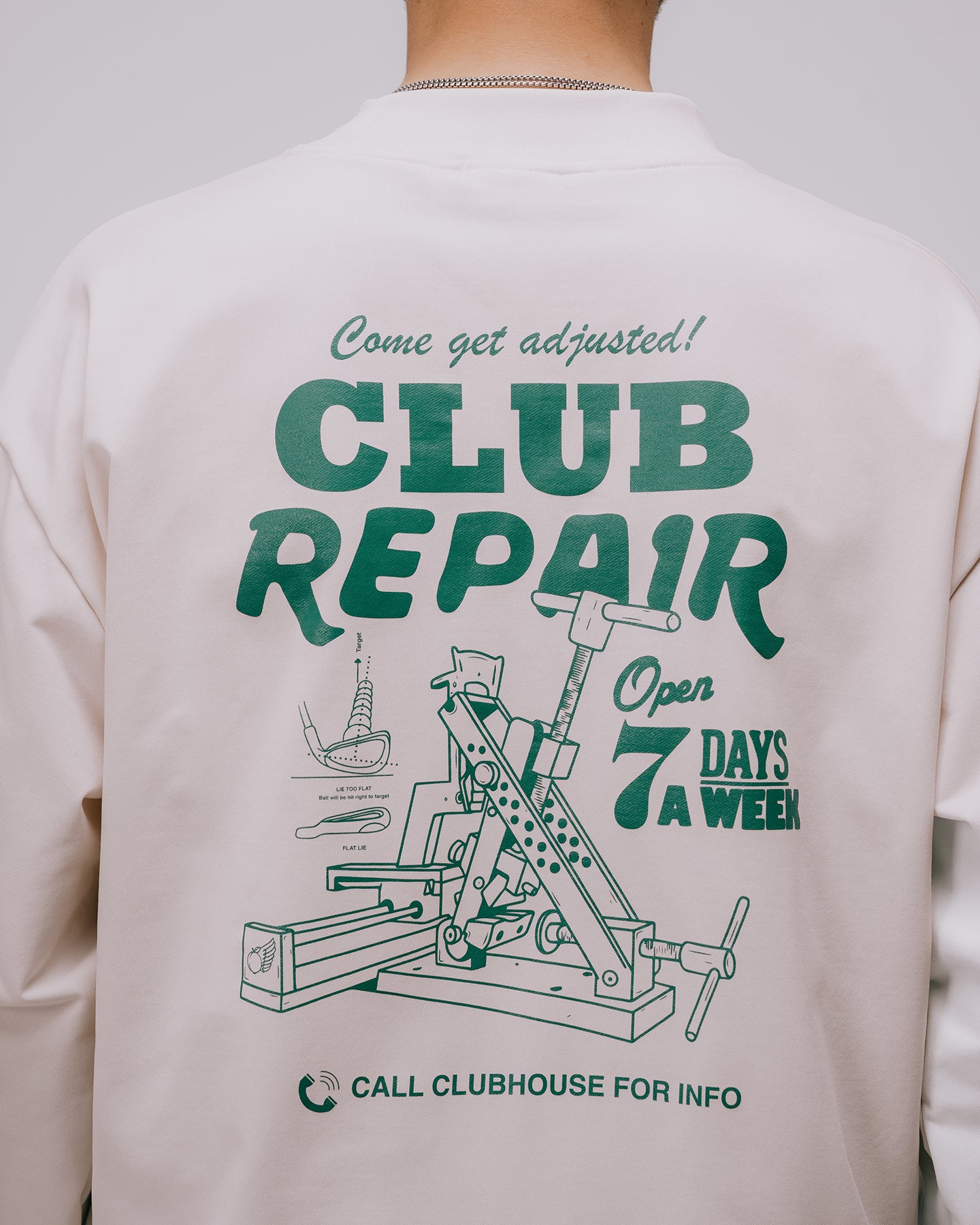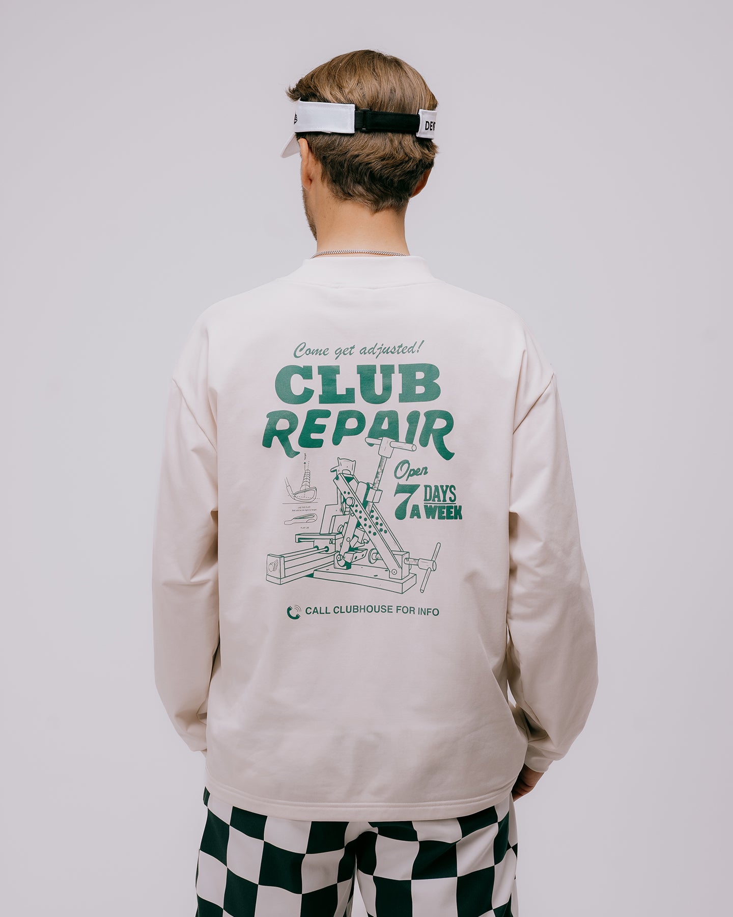 コンパクト裏毛素材を使用した、多機能かつスタイリッシュなモックネックプルオーバー。バックにはDEVEREUX GOLFらしい大胆なグラフィックデザインを施し、フロントのミニマルな印象とバックスタイルのインパクトを両立させました。