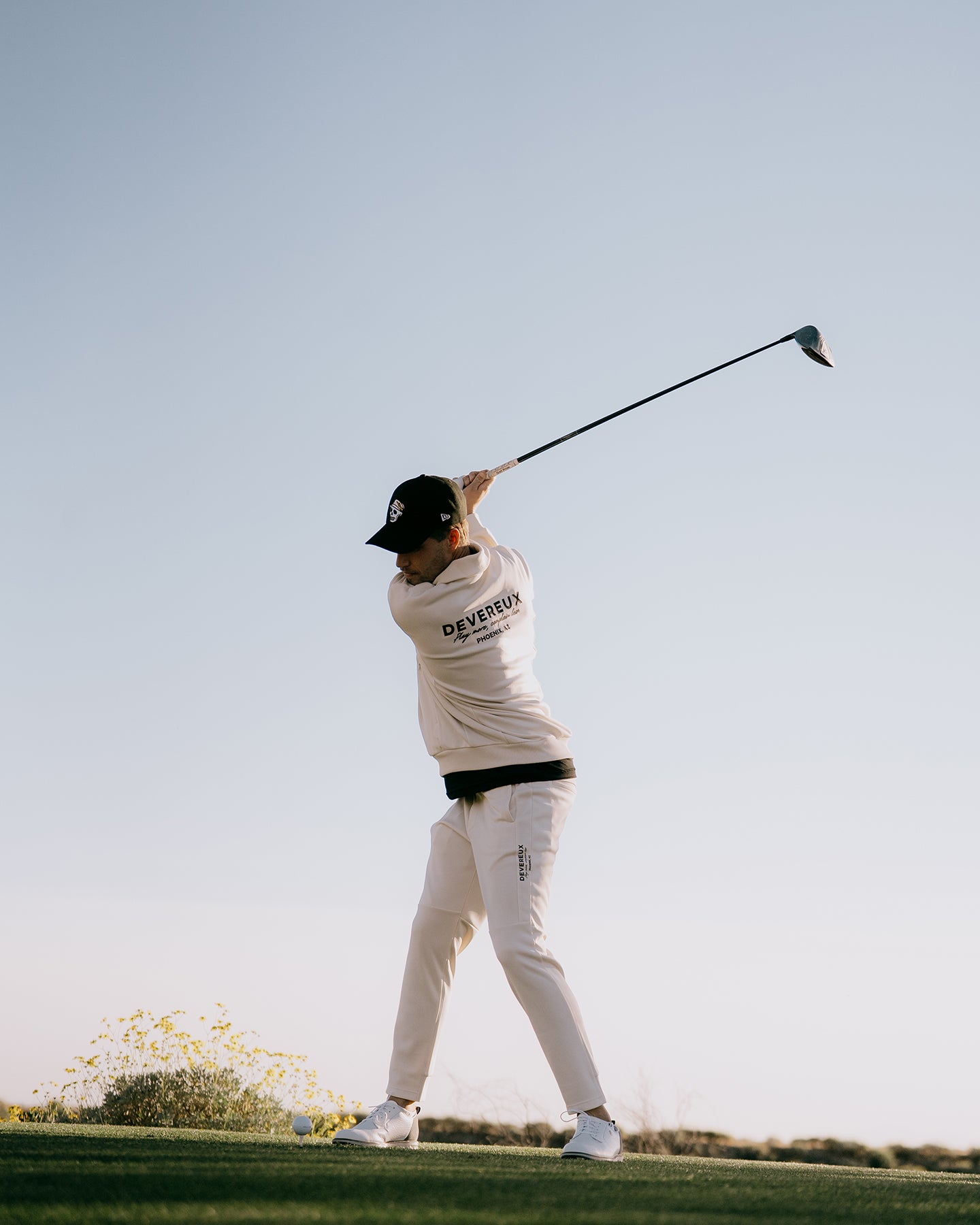 【SETUP STYLE】 同素材の「DVG Classic Club Jacket 075762103」と合わせることで、より統一感のある洗練されたセットアップスタイルが完成します。トータルコーディネートにより、ゴルフの行き帰りからオフショットまで、DEVEREUX GOLFらしいモダンなスポーツルックを体現できます。
