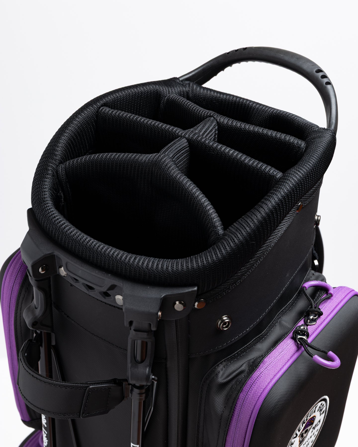 アイコン「スカルキャディ」の存在感 ブランドを象徴するスカルロゴを大胆に配置。個性的なグラフィックが、単なるギアを超えたファッションアイテムとしての格の違いを証明します。