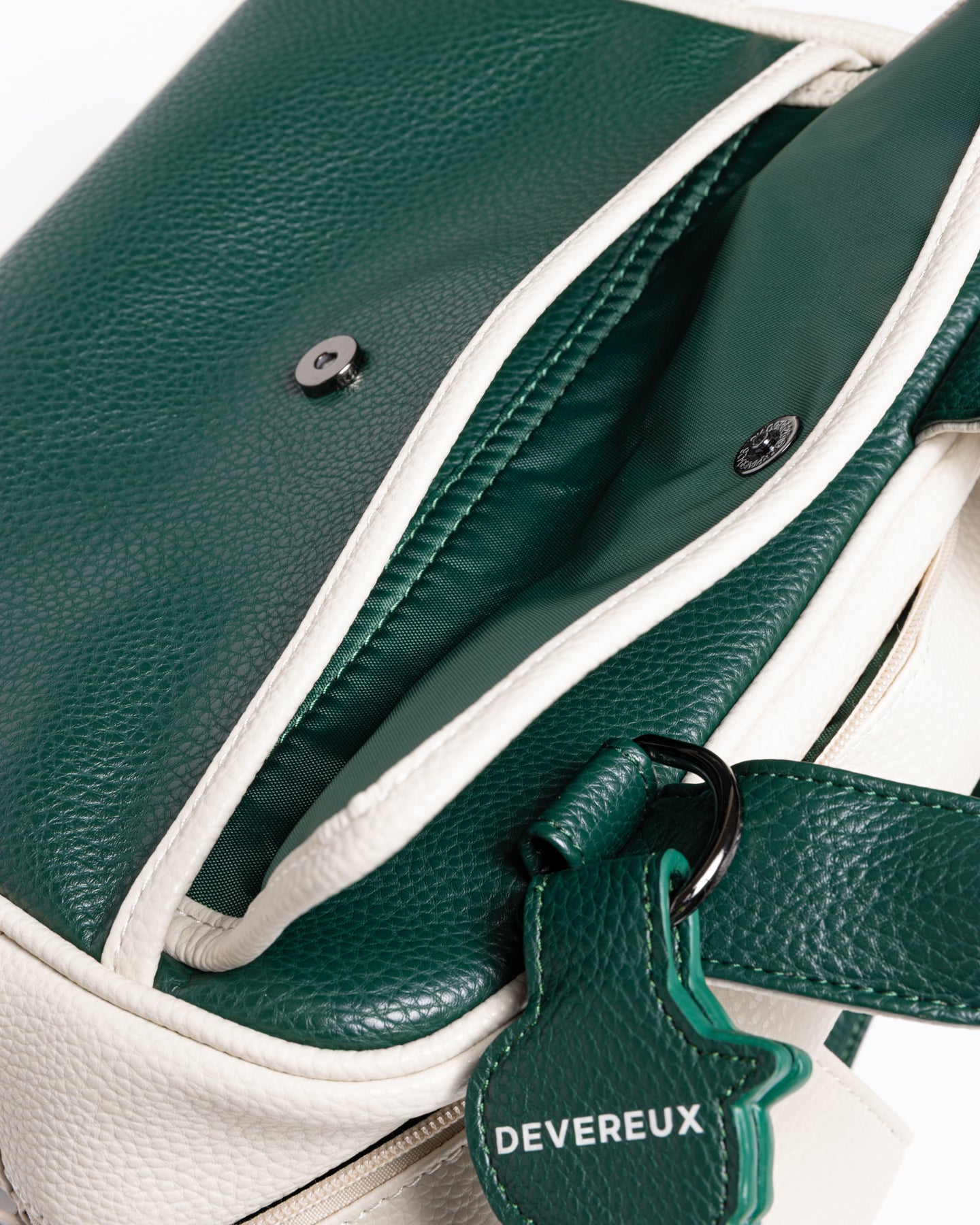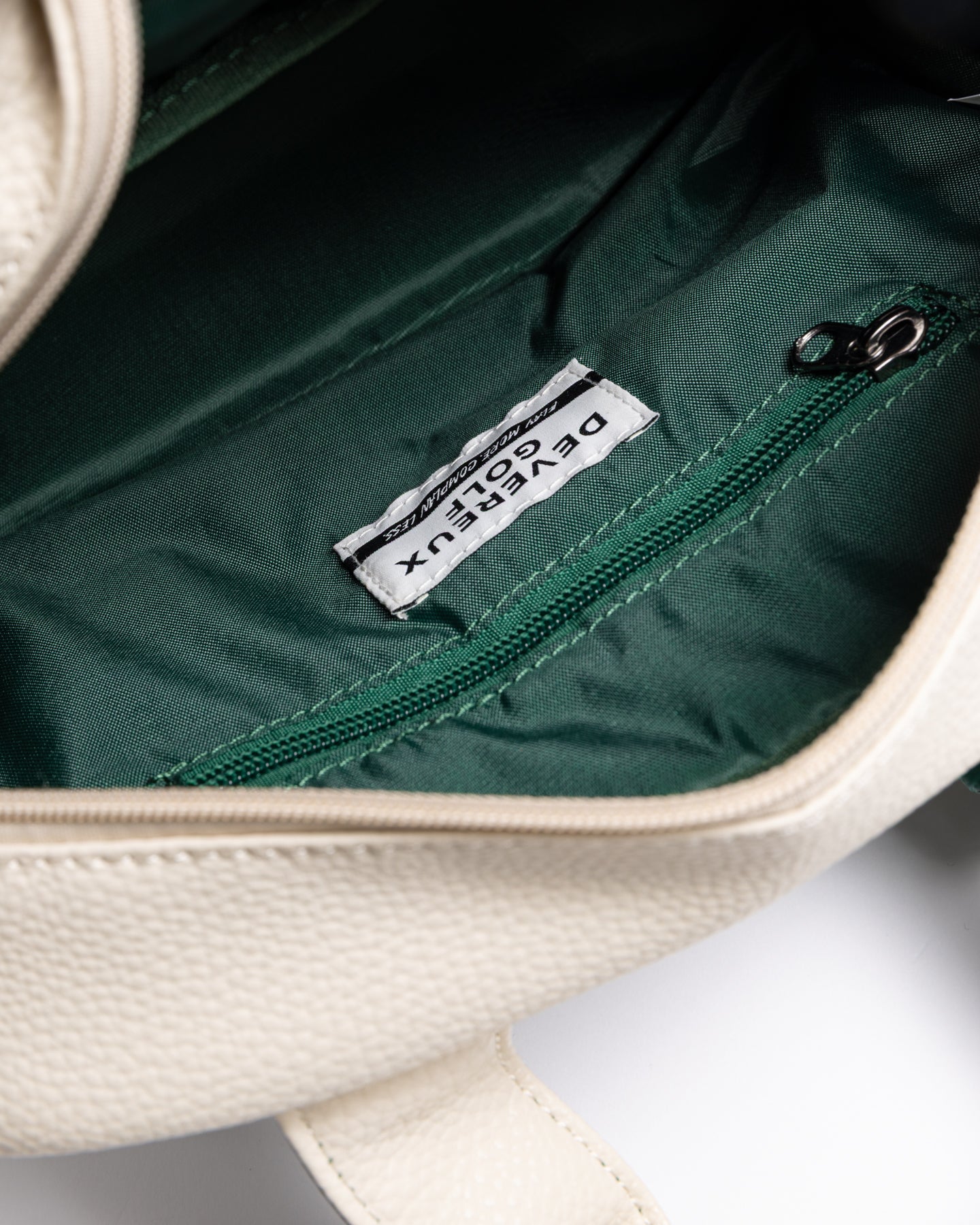 Devereux Golfを象徴するスカルモチーフを、深みのある気品高いグリーンに載せた、ブランドのアイデンティティが凝縮されたバッグです。コース上での利便性はもちろん、街歩きでも違和感なく溶け込む洗練されたルックスに仕上げました。