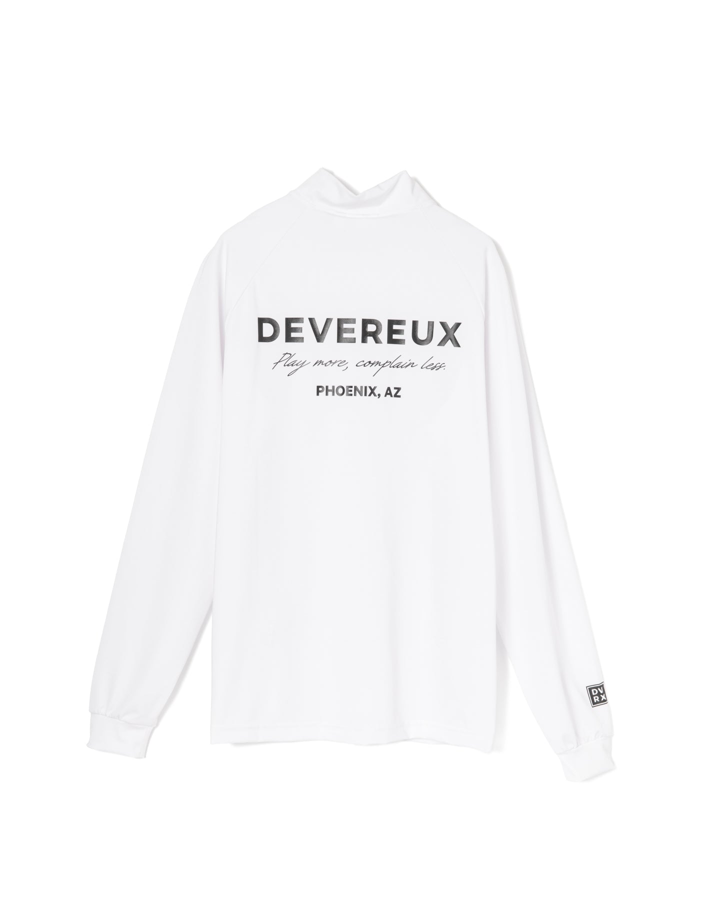 吸水性と速乾性に優れた長袖モックネックTシャツ。DEVEREUXのアイコンやブランドロゴをあしらった、エッセンシャルな一着です。インナーとしてはもちろん、1枚でも快適にラウンドできる仕上がりとなっています。