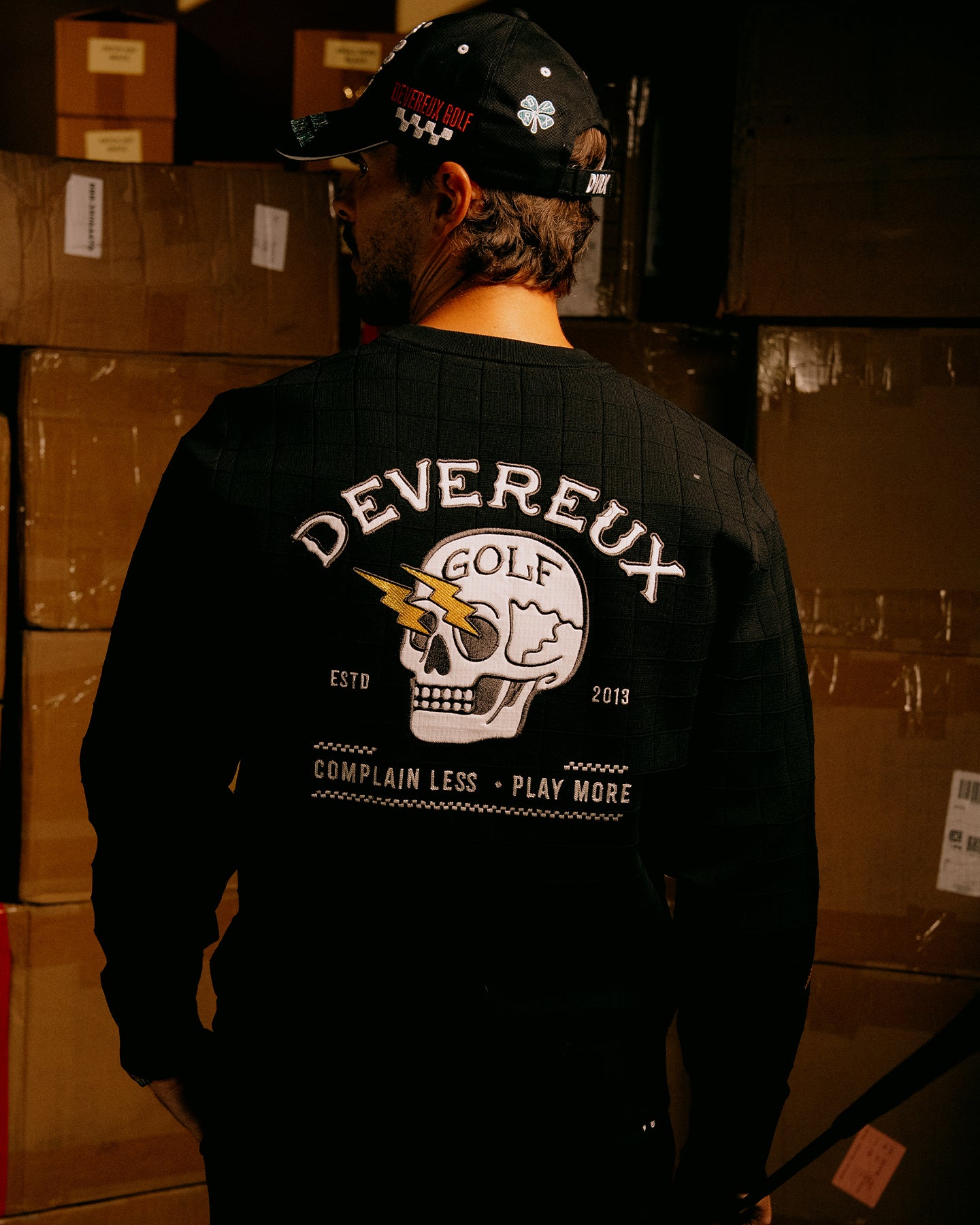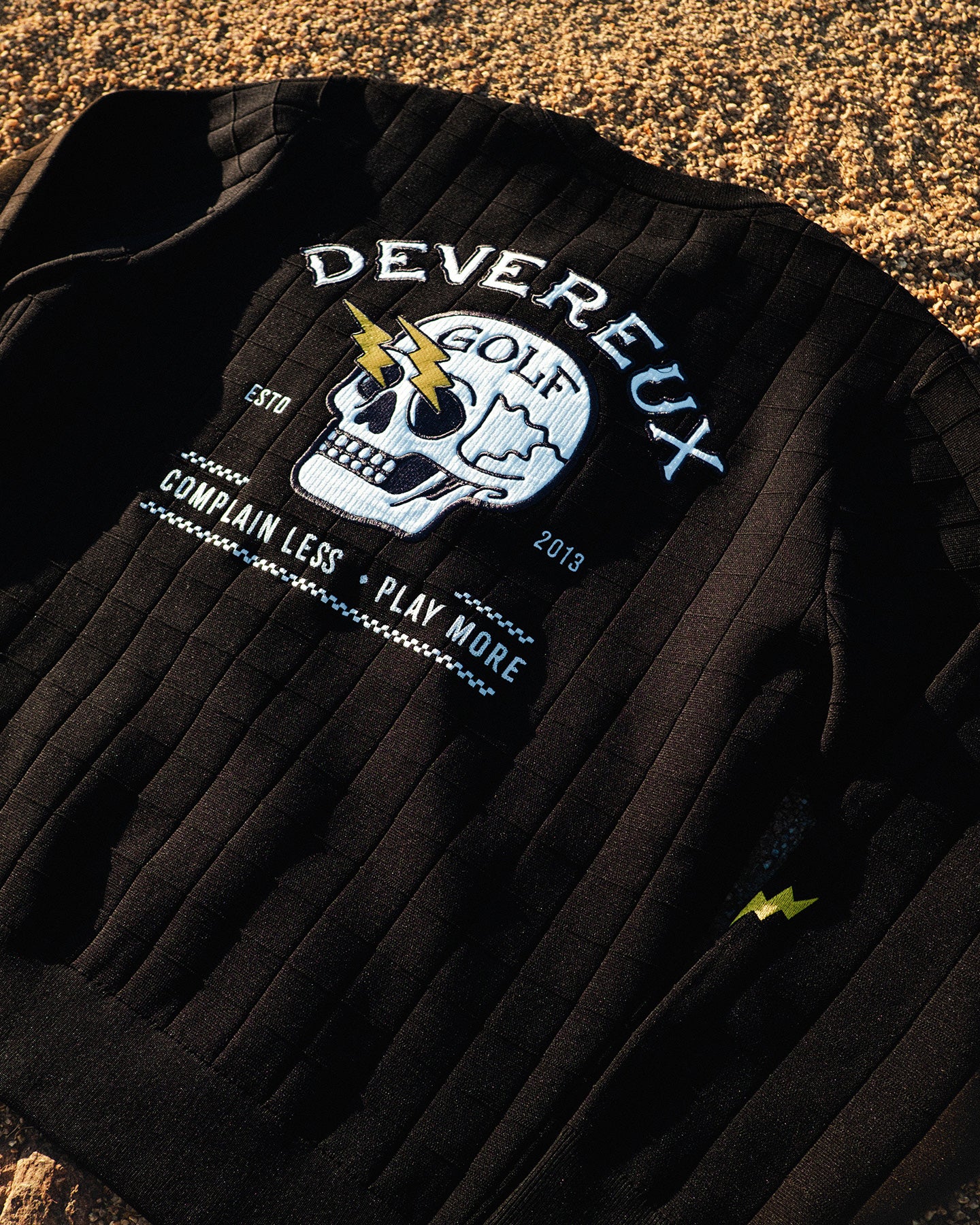 さりげなく入ったバイカーイメージの稲妻刺繍は、スイング時にもアクセントになり、動きに合わせたデザインポイントに。