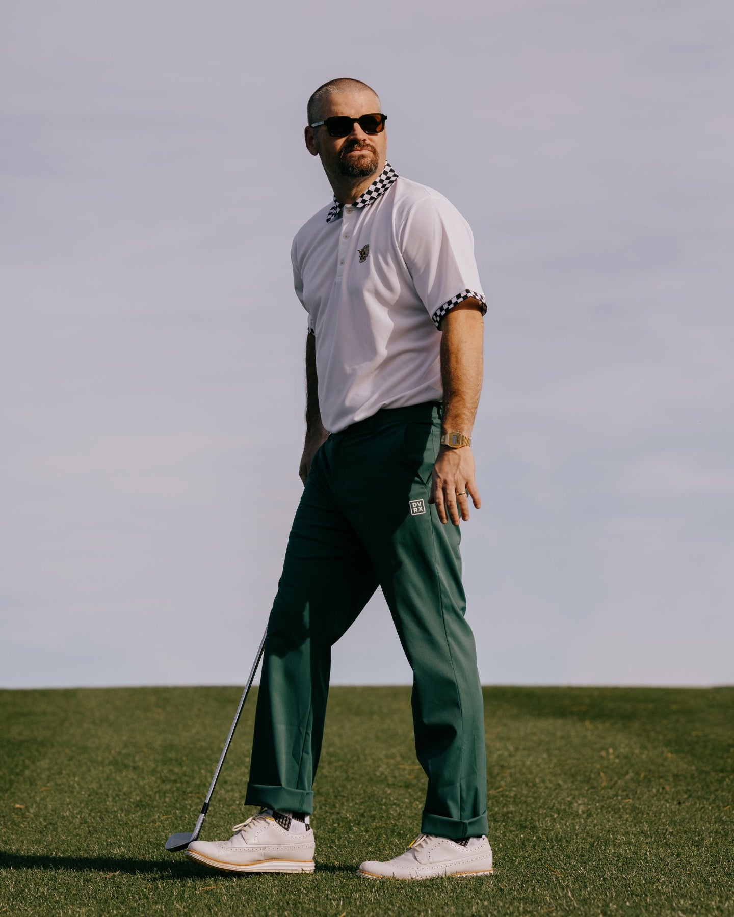 ジャガードでチェッカーフラッグ柄にした衿が特徴です。
