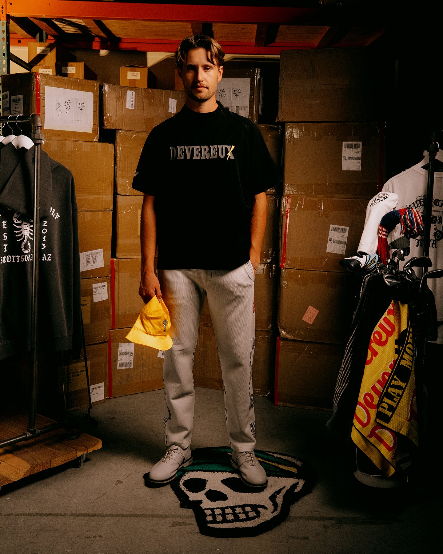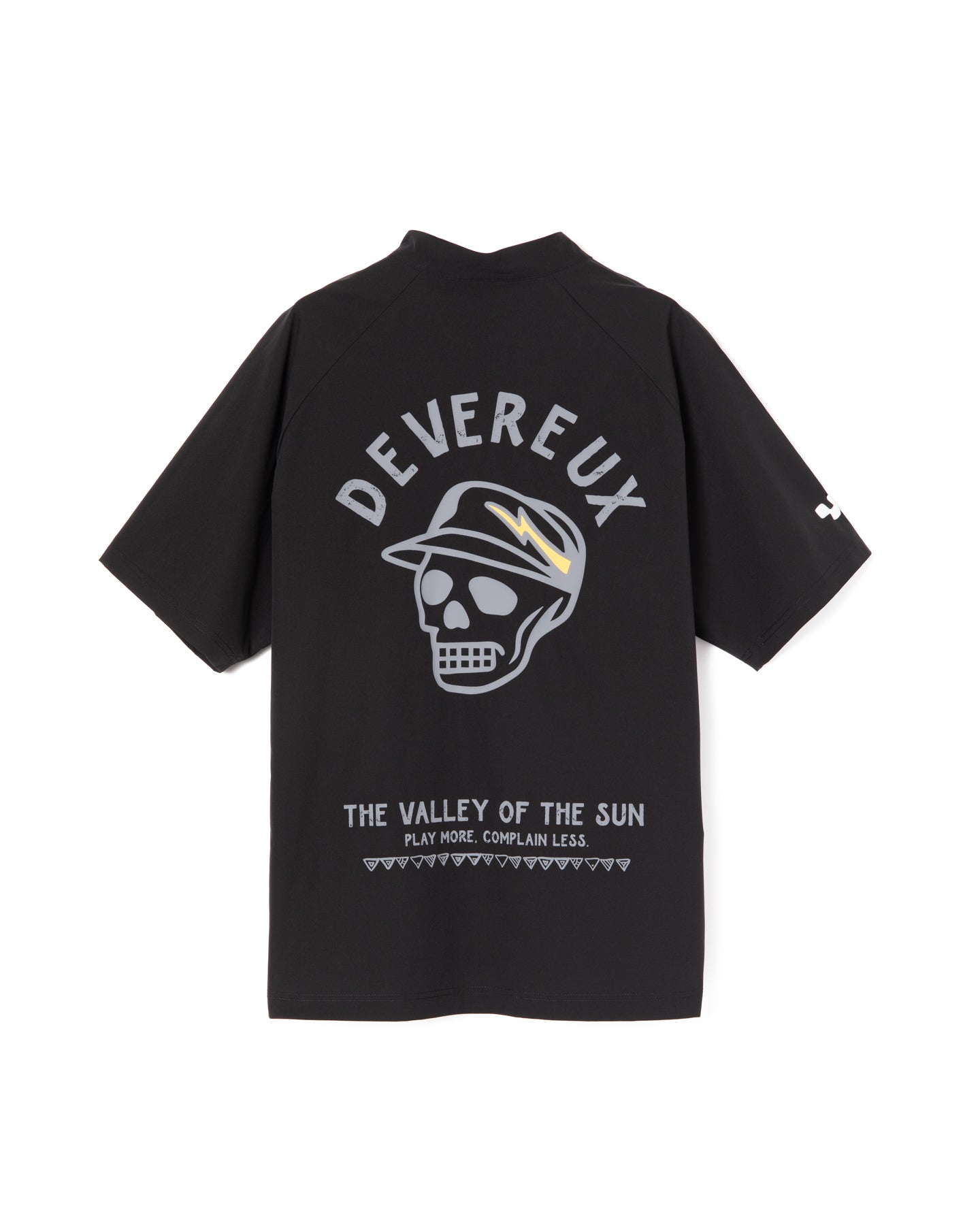 自由な動きを叶える4WAYアクティブストレッチ素材を使用した、モックネック半袖プルオーバー。軽量で通気性・透湿性に優れ、ゴルフシーンを快適にサポート。1枚での着用はもちろん、重ね着にも対応できる汎用性の高い一着です。背面には、スカルキャディとネイティブアメリカンモチーフをヴィンテージ調でプリントしています。