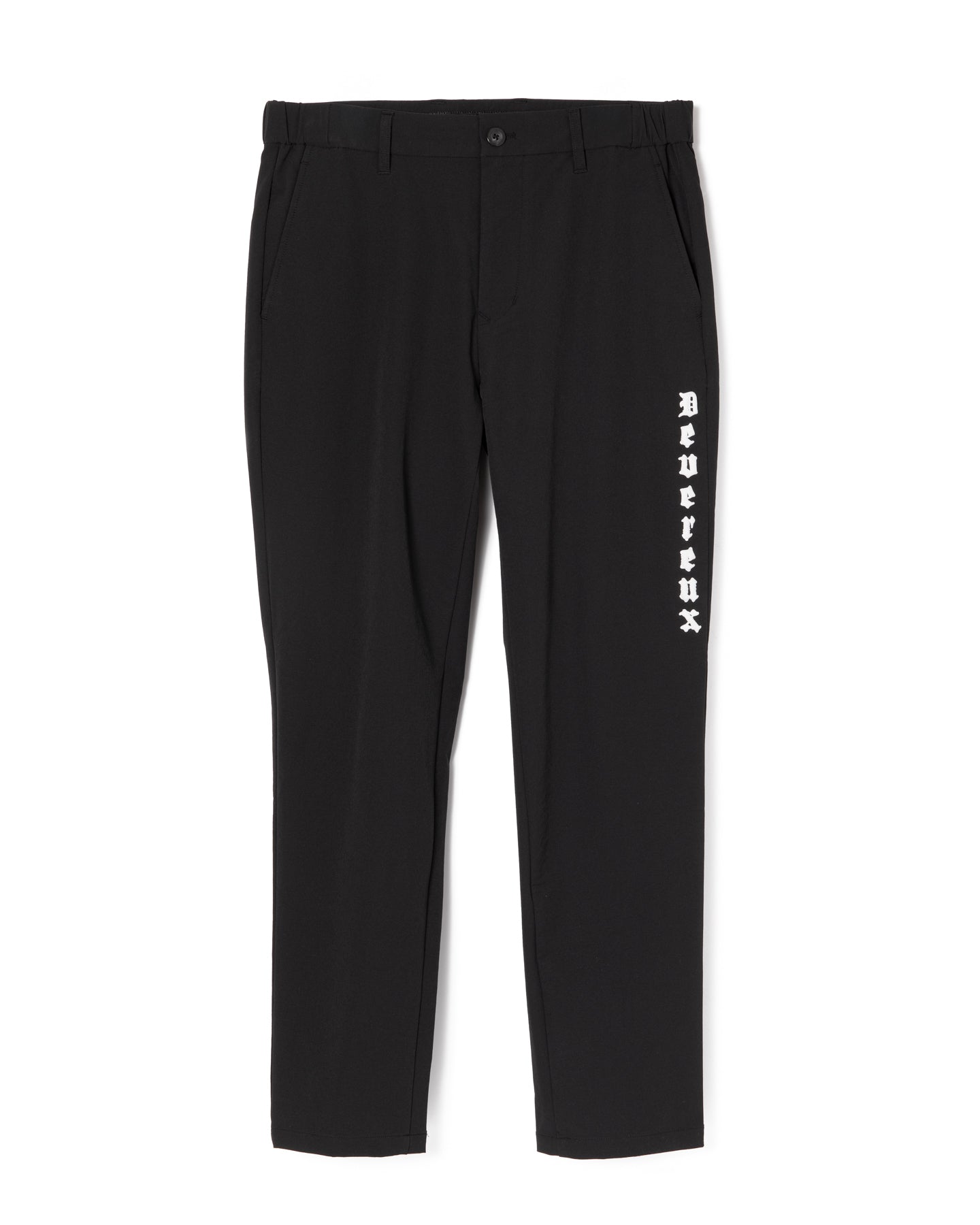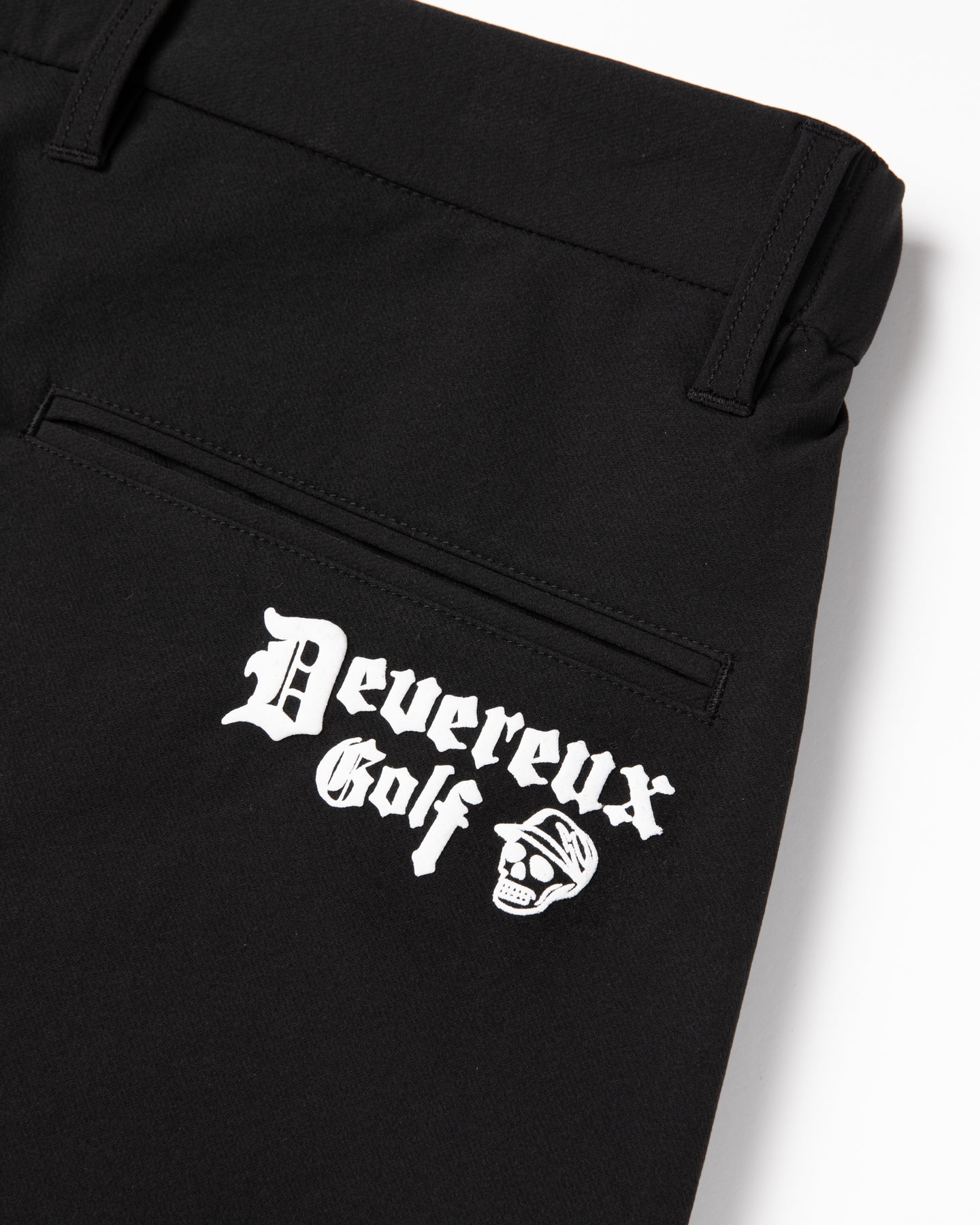 タフなコーデュラ素材にストレッチ性を加え、DEVEREUXらしいファブリックでスタイルの良いシルエットに仕上げた一着です。ウエストゴムは両サイドのみに配置し、快適さとスタイリッシュさを両立。タウンユースでも着こなせる逸品で、ブランドロゴには男らしいフォントを採用しています。