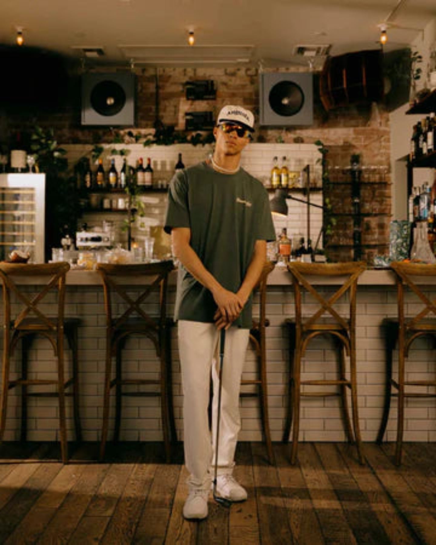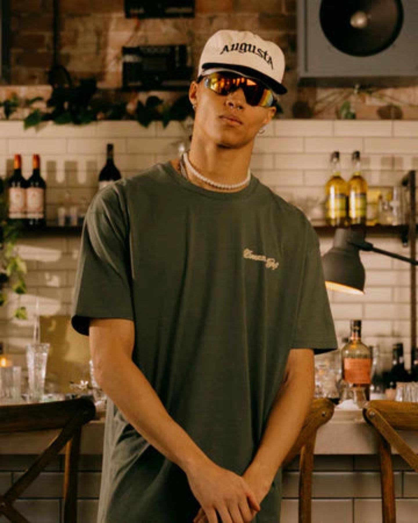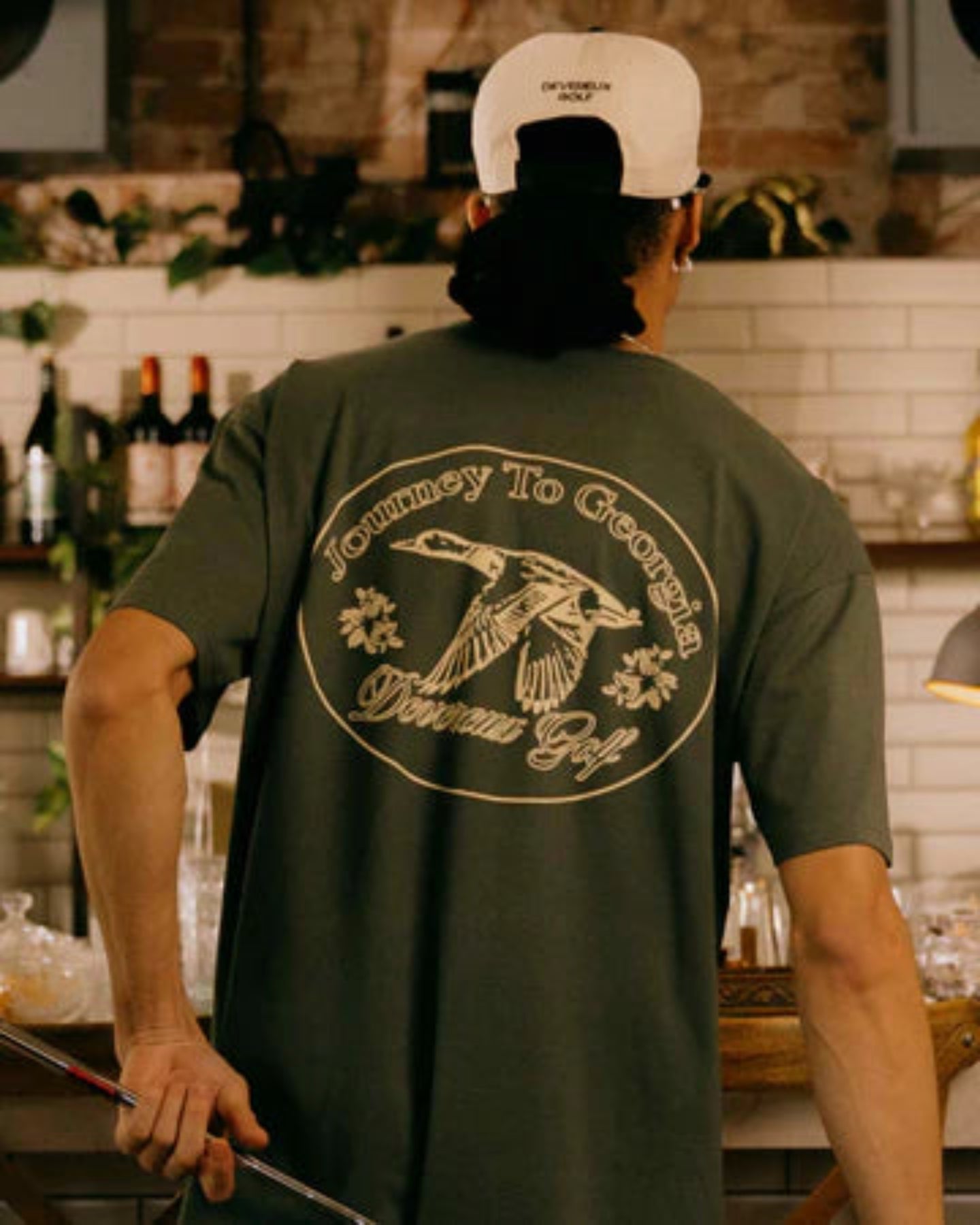 100%コットンの中肉天竺Tシャツ。毎年行われるPGAメジャートーナメント"Masters"観戦の旅からインスピレーションされたグラフィックプリントが特徴。