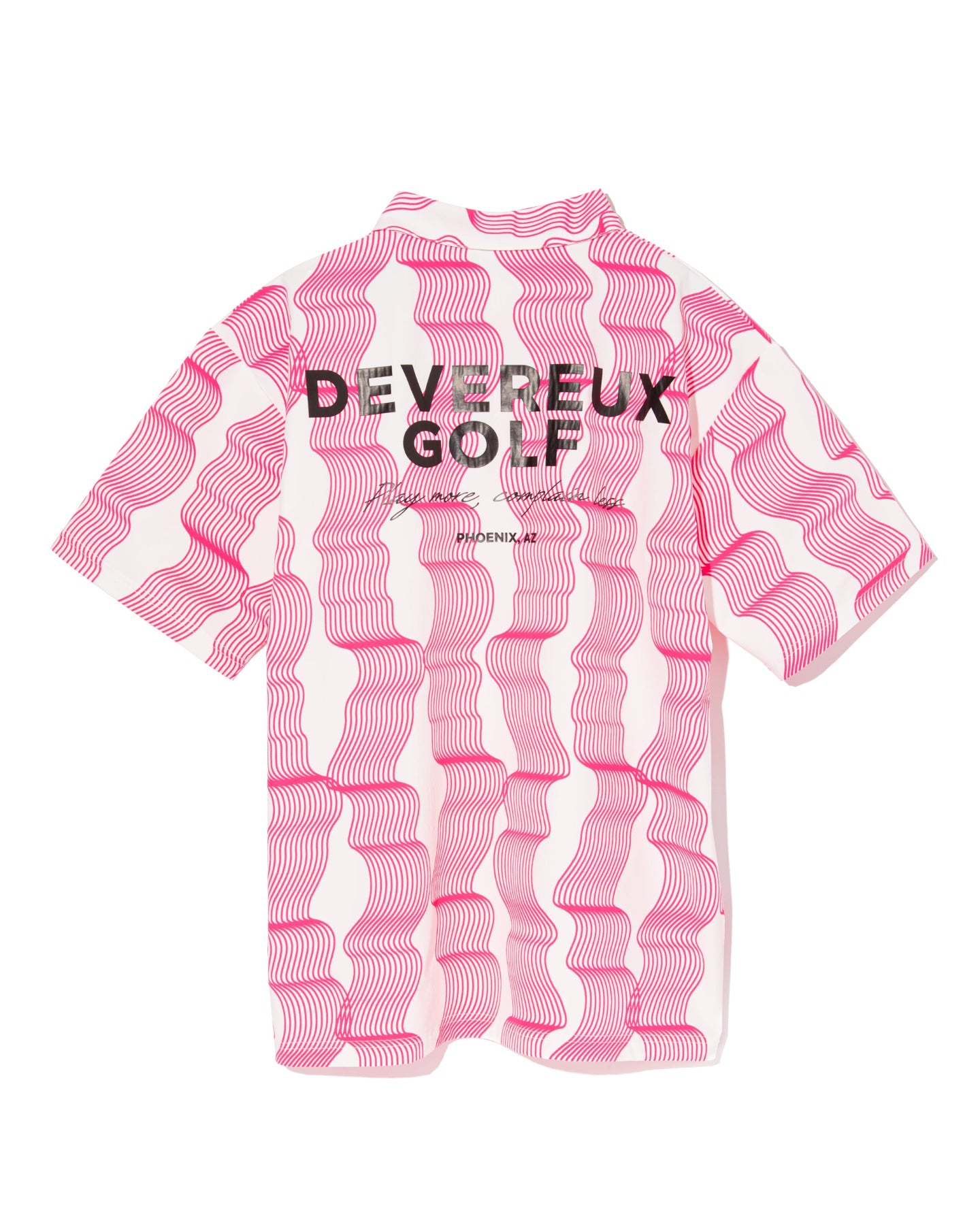 アリゾナの岩山に見られる地層からインスピレーションを得た、ユニークなグラフィックアートが印象的なポロシャツ。2WAYストレッチ、防シワ、接触冷感、UVカット、撥水、透湿、ウォッシャブルといった多機能を備えた、高品質な素材を使用しています。