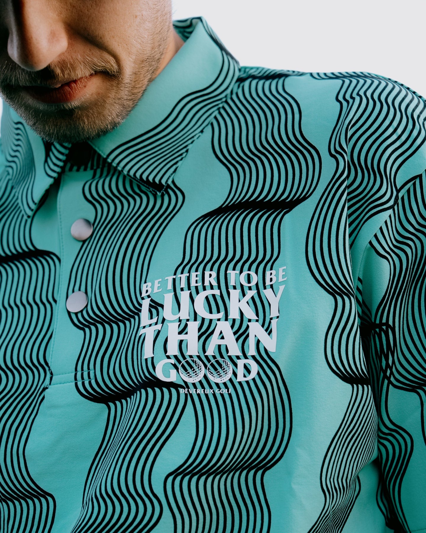 アリゾナの岩山に見られる地層からインスピレーションを得た、ユニークなグラフィックアートが印象的なポロシャツ。2WAYストレッチ、防シワ、接触冷感、UVカット、撥水、透湿、ウォッシャブルといった多機能を備えた、高品質な素材を使用しています。