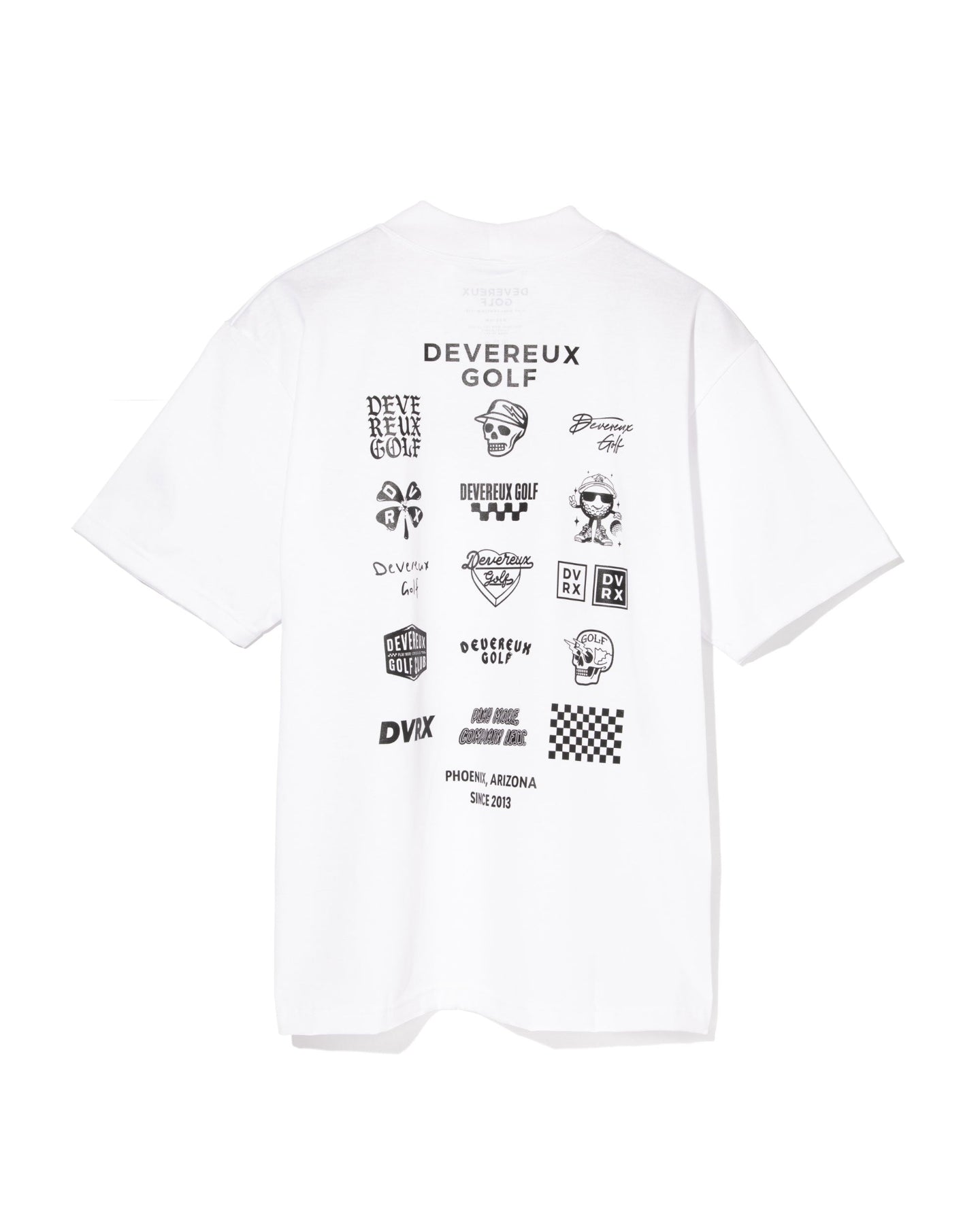 超ハイゲージで編み立てた綿100%半袖スリーブモックネックTシャツ。バックにアソートされたDEVEREUXオリジナルグラフィックの数々をプリントしたDEVEREUXライフスタイル人気アイテム。