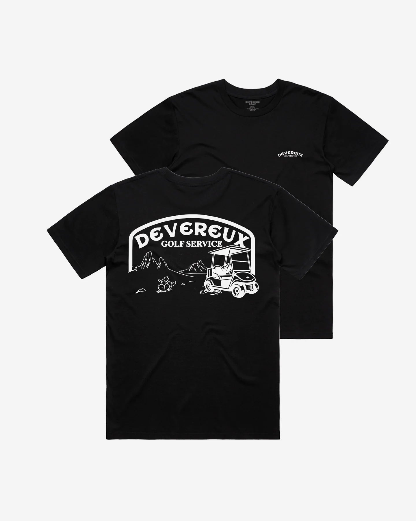 DEVEREUX Cart Services Tee は、ゴルフカートの整備からギアのメンテナンス、そして週末にDIYを楽しむプレーヤーまで、ゴルフを支える“知られざるメカニクス”に敬意を表した一枚です。ヴィンテージのサービスショップの看板や砂漠の風景からインスピレーションを受け、昔ながらの自動車整備工場の雰囲気にゴルフのエッセンスを融合させました。