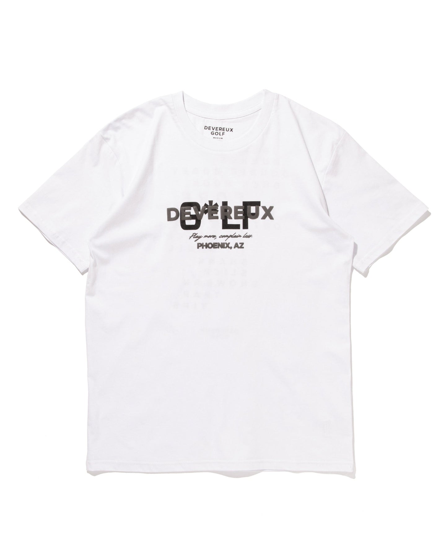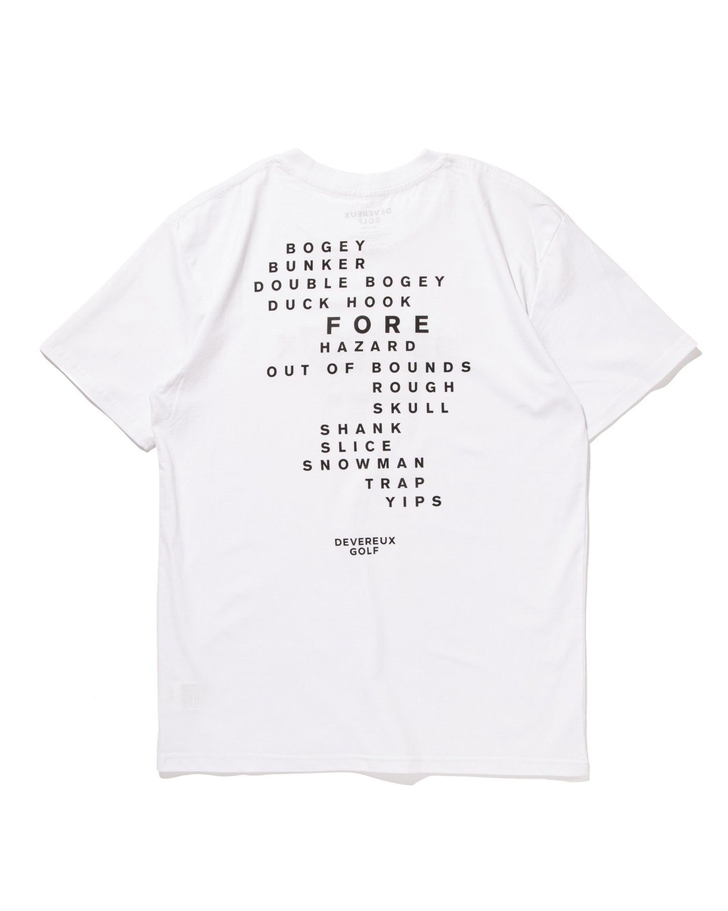 フロントにDevereuxロゴの発泡プリント、バックはGolf用語をグラフィック化したオリジナルラバープリント。