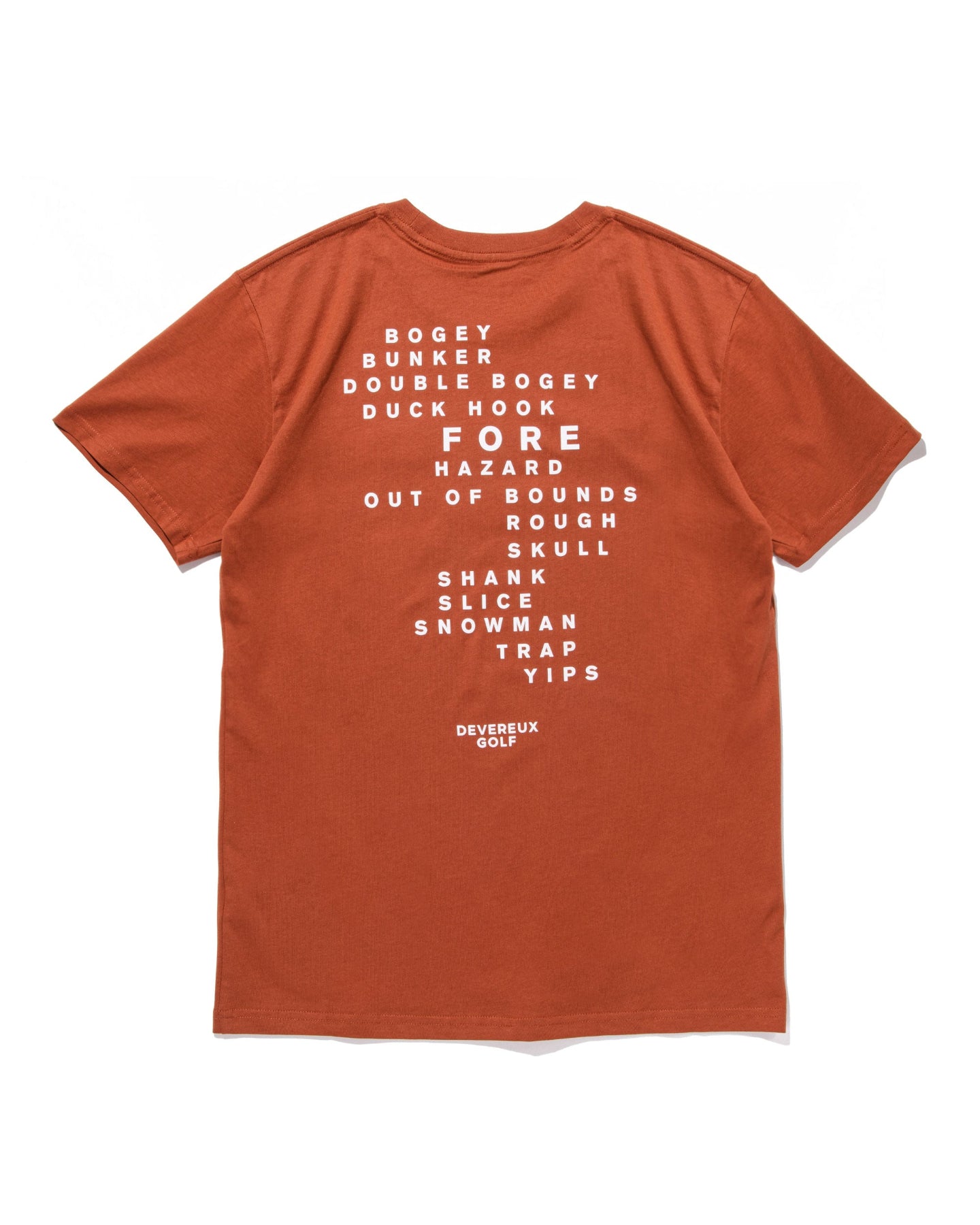 フロントにDevereuxロゴの発泡プリント、バックはGolf用語をグラフィック化したオリジナルラバープリント。