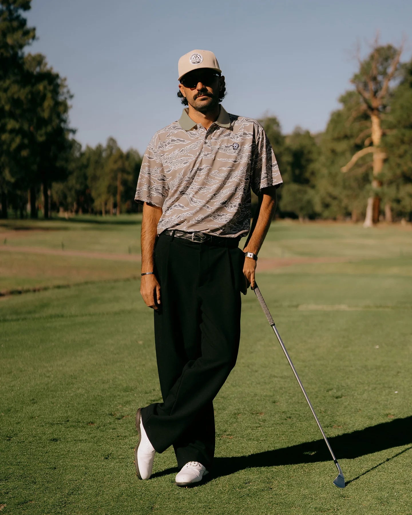 現代のゴルフスタイルに、大胆で男らしいエッジを。 「Tiger Stripe Polo」は、ヴィンテージのミリタリー迷彩からインスピレーションを得て誕生した、今季最もタフな表情を持つ一着です。