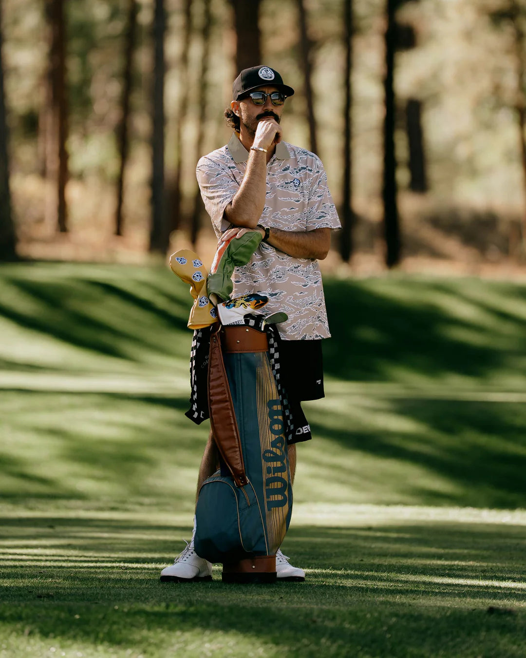 主張の強いタイガーストライプを、DEVEREUXらしいカラーパレットで洗練されたパターンへと昇華。力強さと控えめな品格を絶妙なバランスで融合させ、コース上で圧倒的な存在感を放ちます。