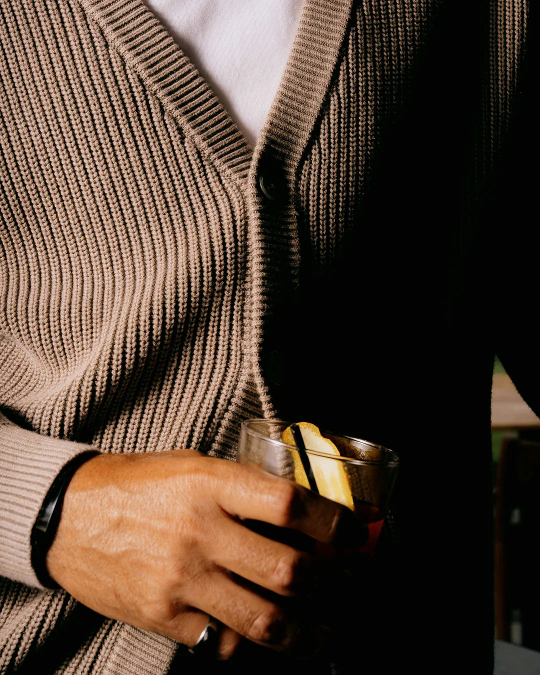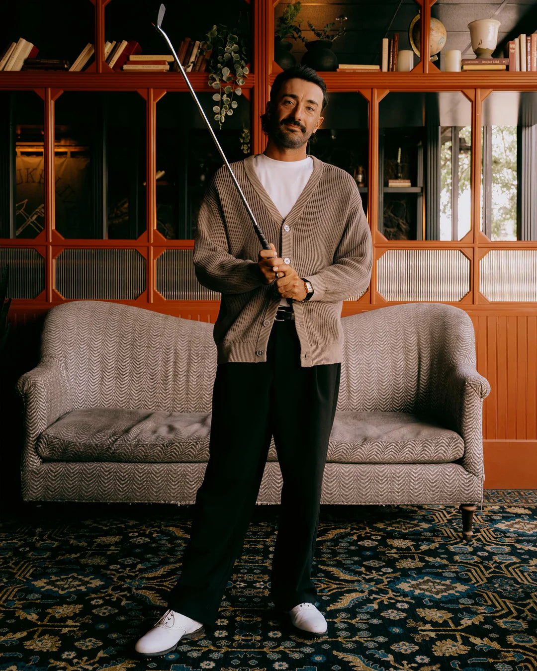 アリゾナの高地が織りなす質感と色調にインスパイアされた「Fisherman Cardigan」。クラシックなケーブルニットの魅力に、現代的な洗練さを加えたこの一着は、コース上だけでなくあらゆるシーンで男らしくも上品なスタイルを演出します。