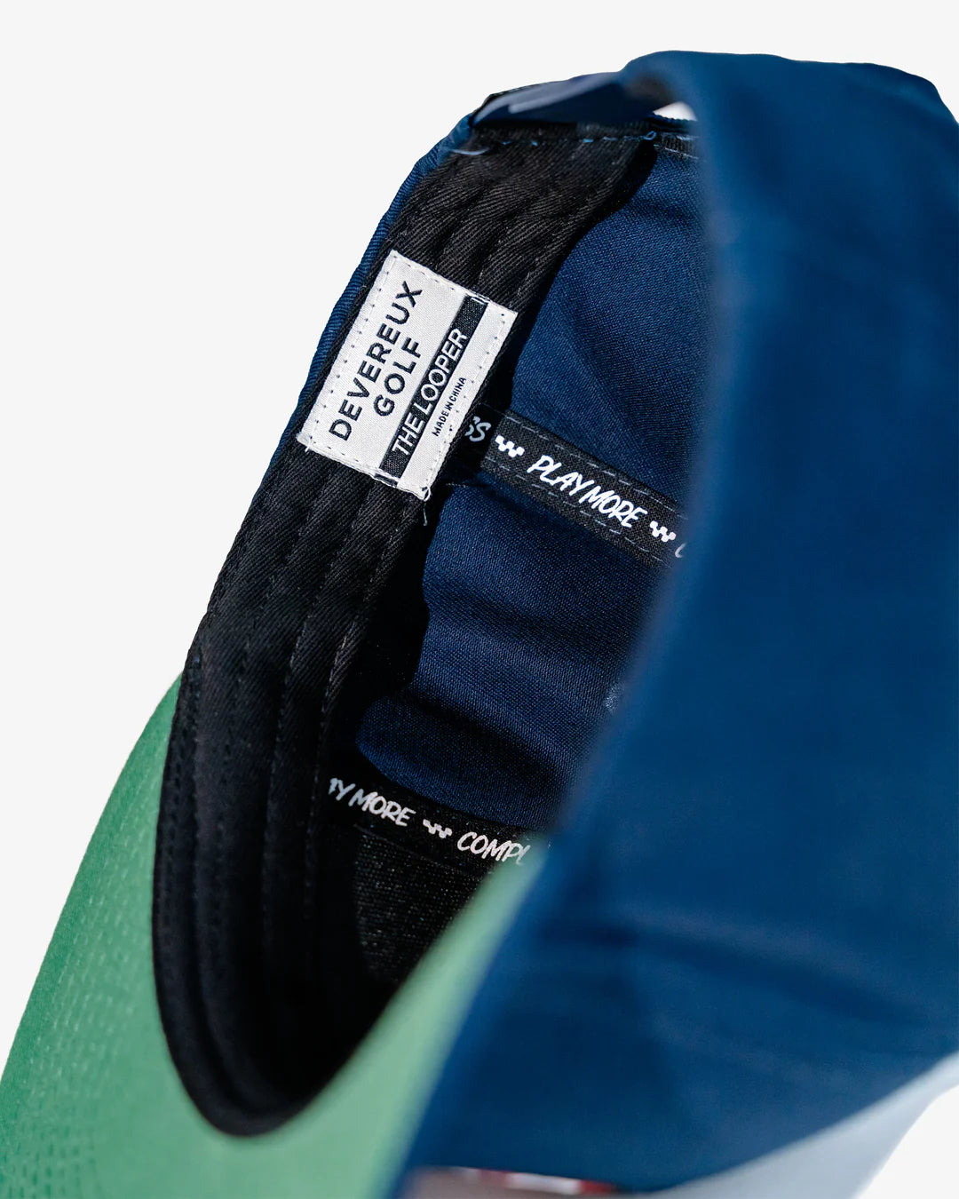 フロントにはビッグアップルの刺繍ロゴ、つば裏にはコントラストの効いたグリーンを採用し、タイムレスなゴルフスタイルを想起させるデザインに仕上げました。
