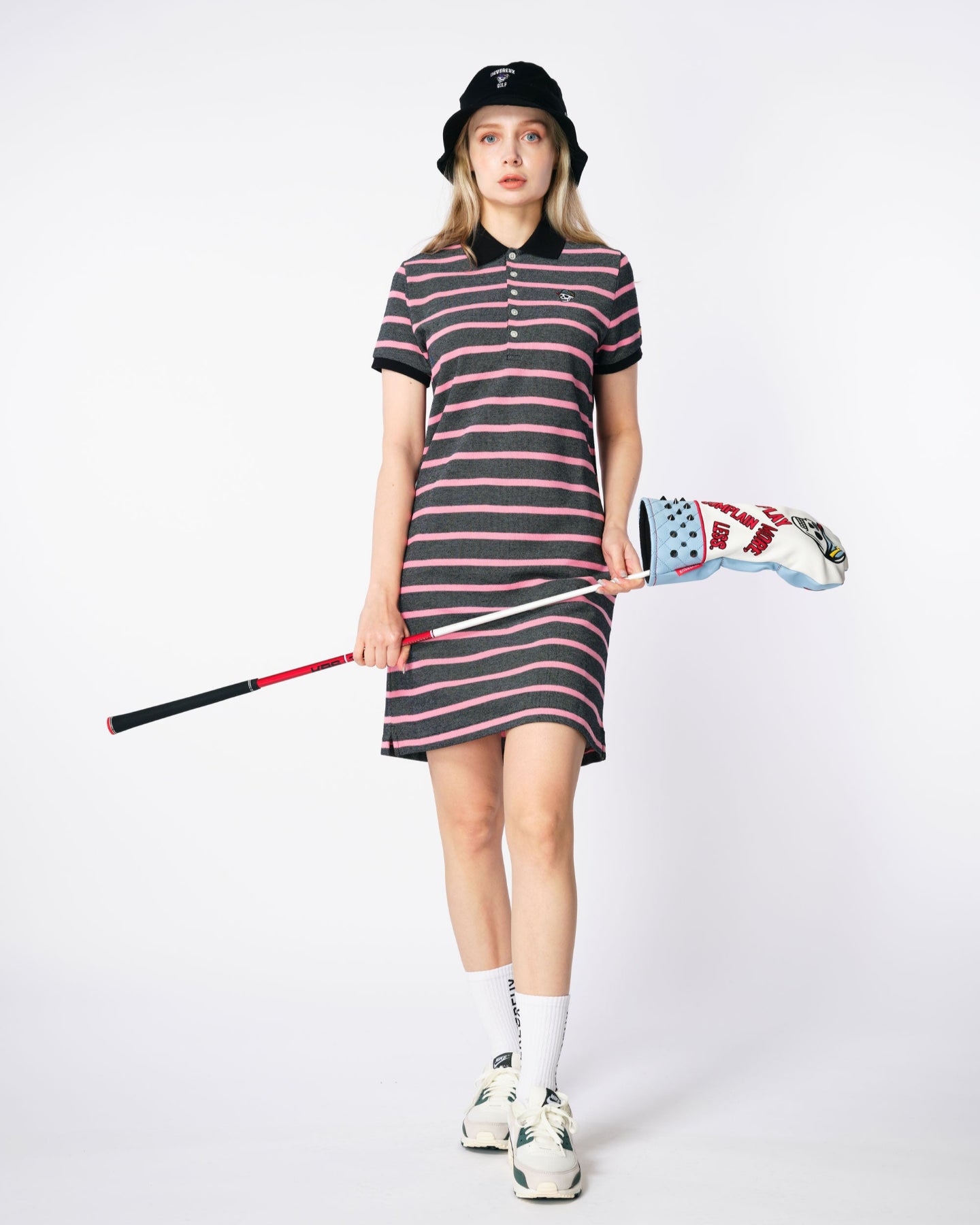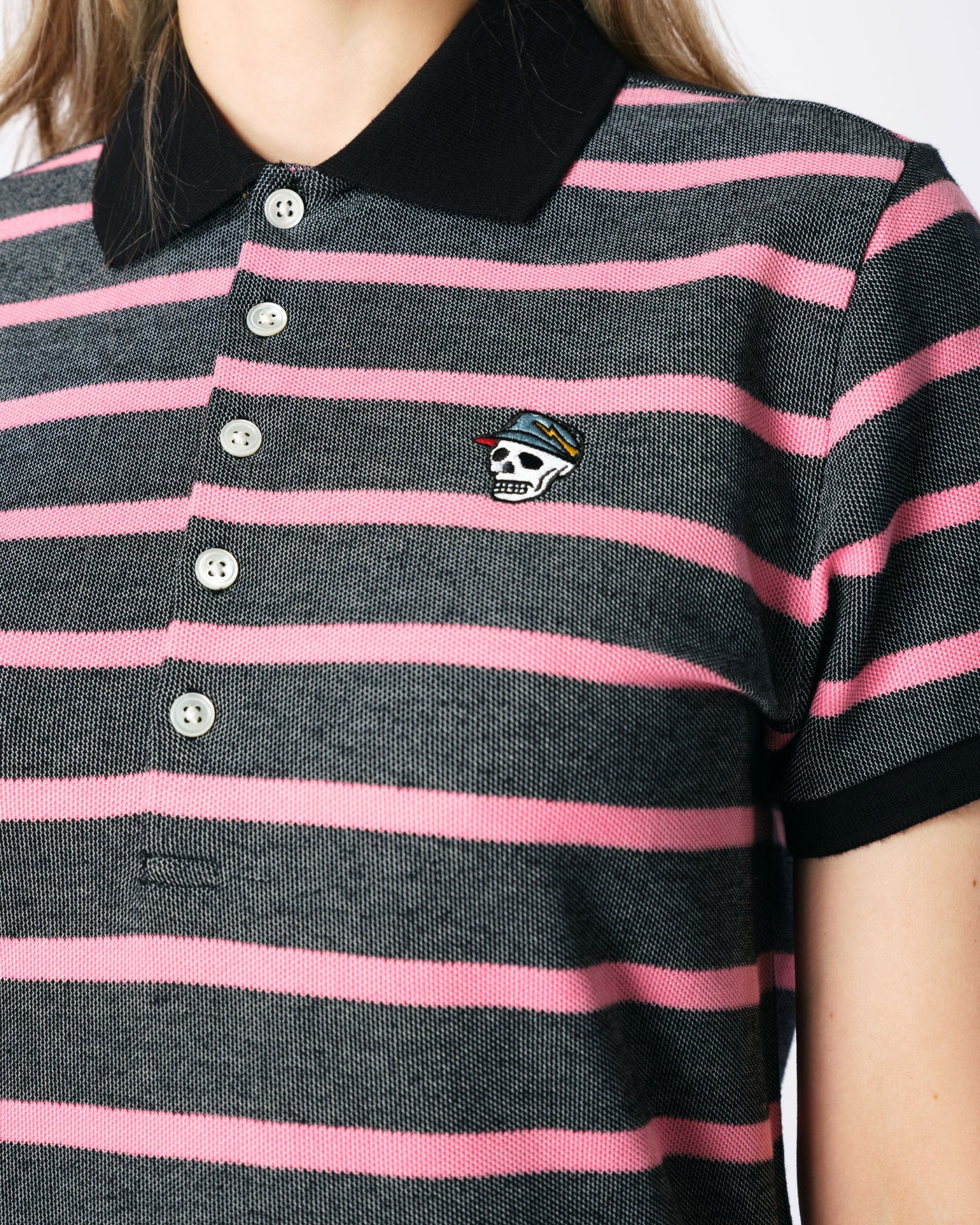 綿ポリエステル鹿子素材を使用しており、速乾性に優れているOP。アメリカブランドらしいクラシックなボーダー柄が目を引きます。