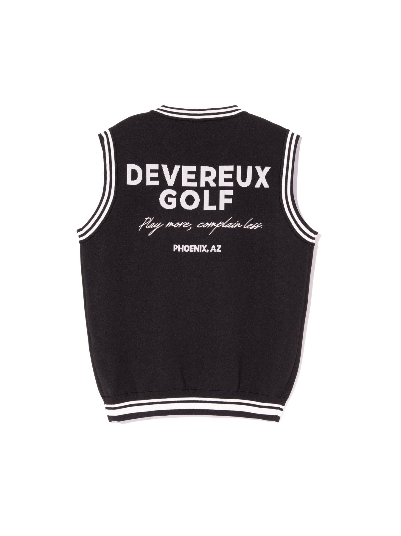 スポンジーなポリエステル100%の機能糸を18Gというハイゲージで編んだ、高級WOMENSニットベスト。前身・後身にDEVEREUXシグネチャーロゴをジャガード編みしたDEVEREUXアイコンアイテム!