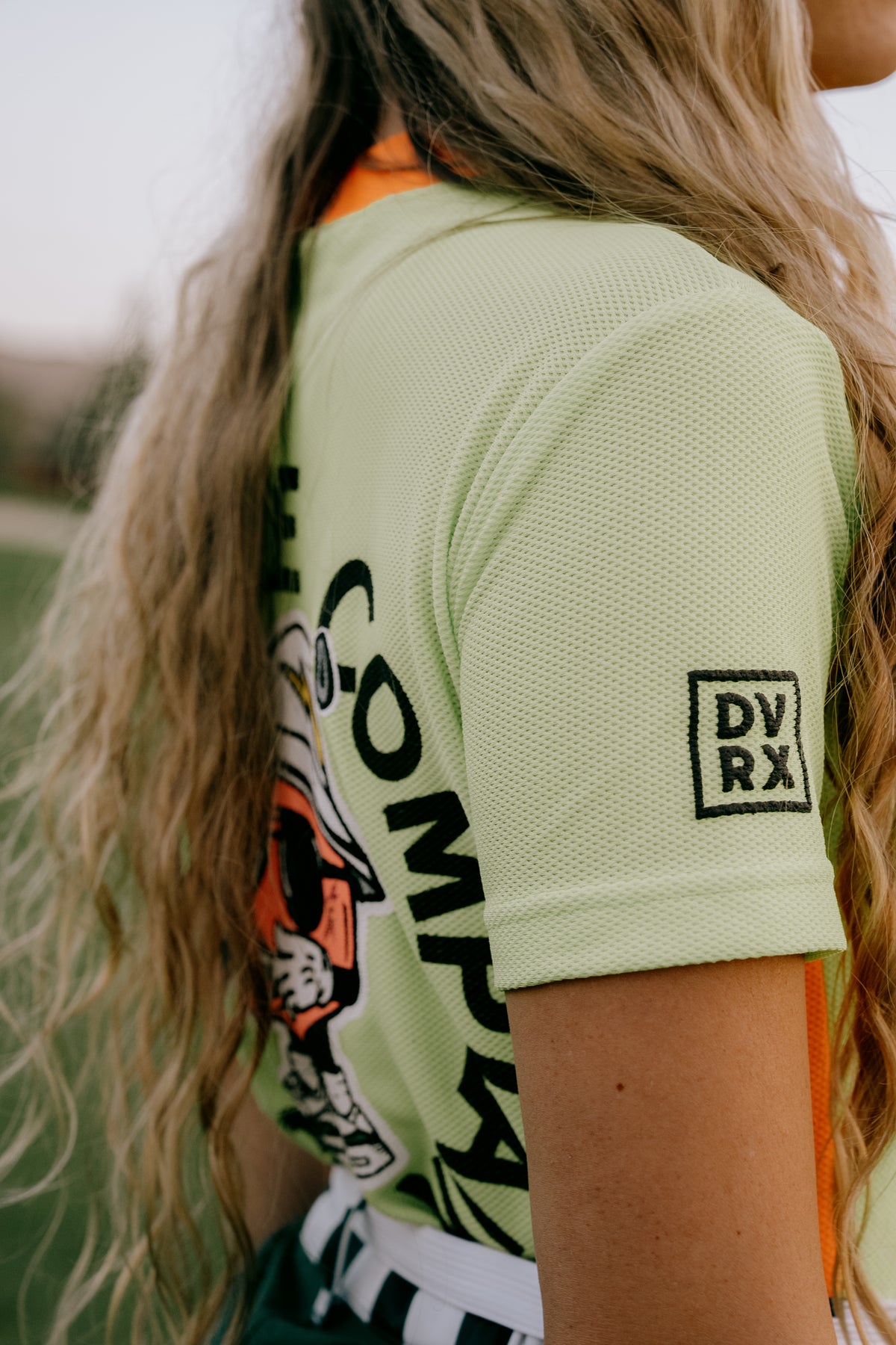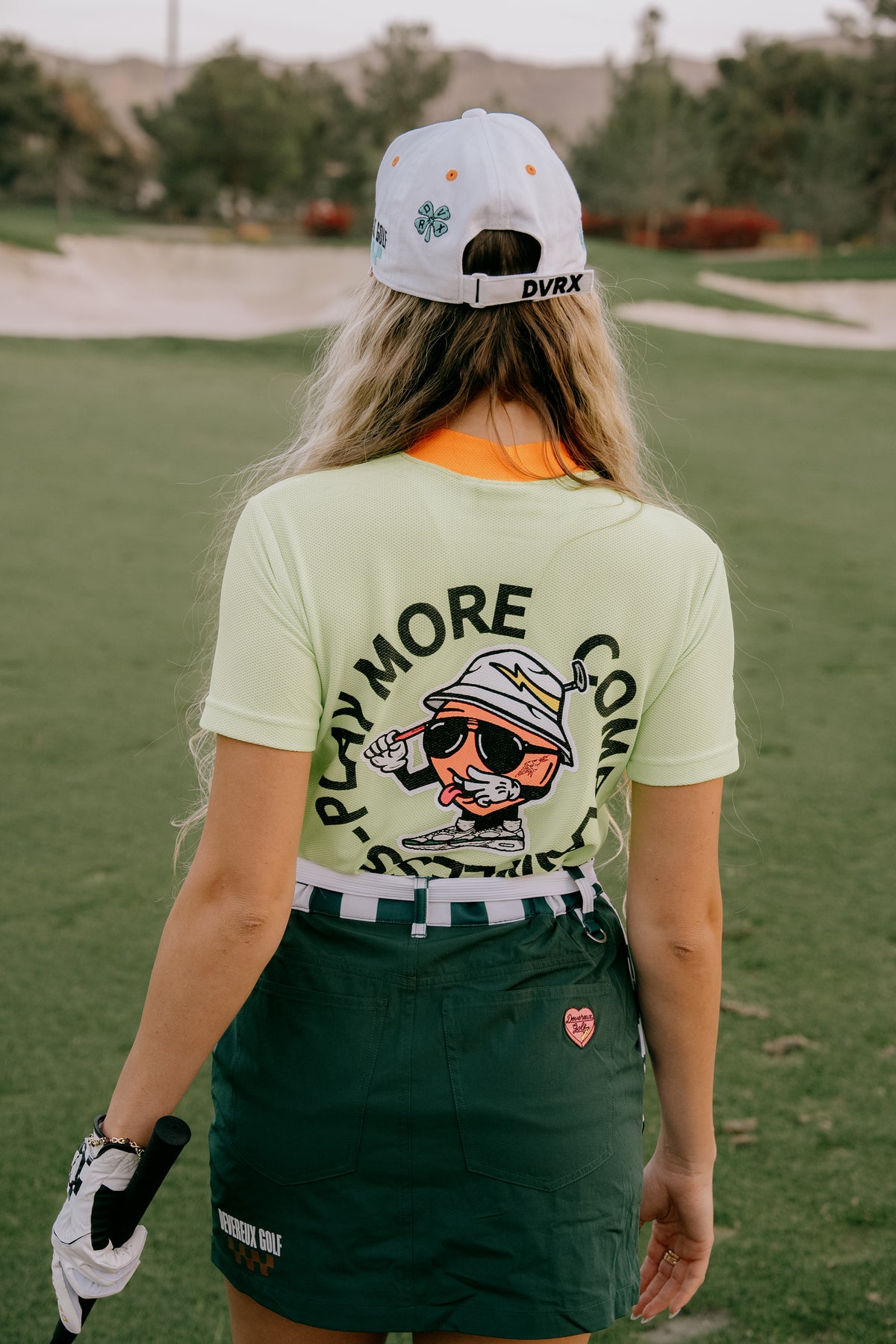 吸湿速乾、UVカット、ストレッチ性バツグンの素材を使ったWOMENSモックネックTシャツ。モックネックと脇は配色デザインで、バックには大人気のPeachy Maneをプリント。夏に1枚は持っておきたい、機能性も見た目もGOODなアイテム。