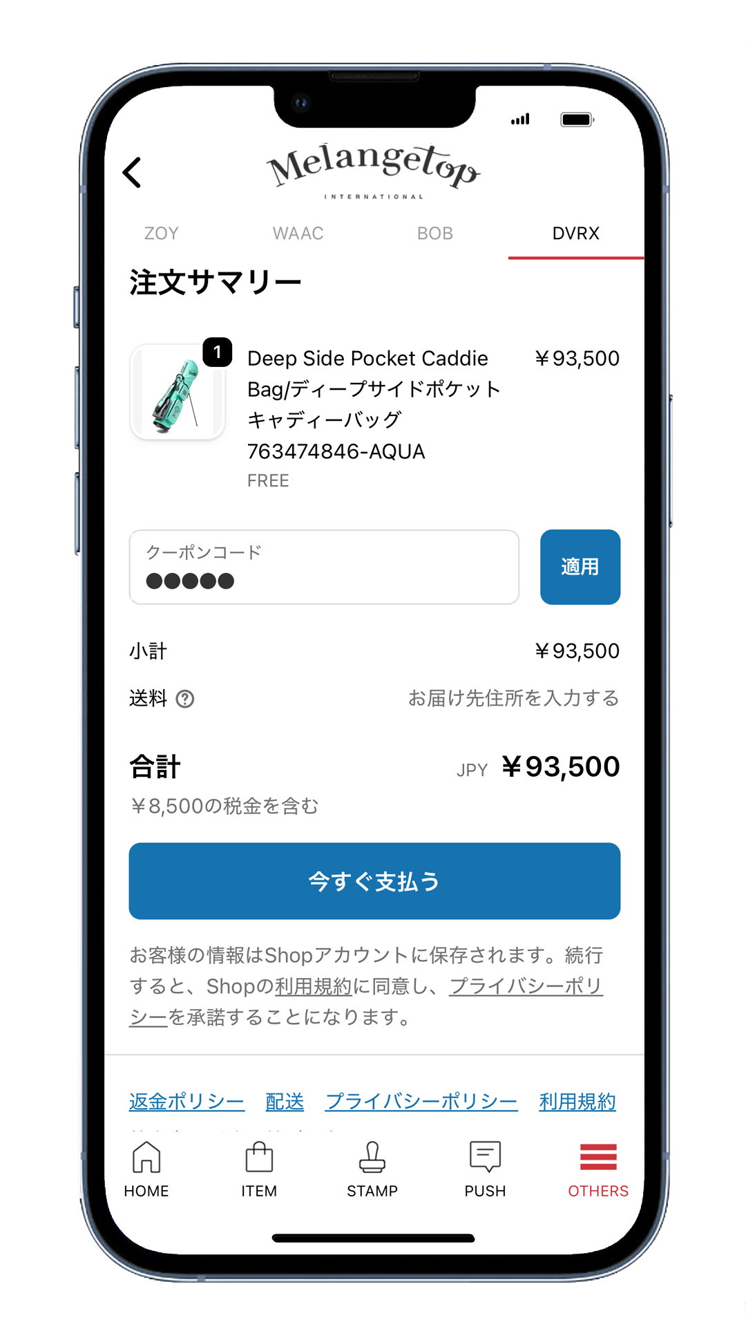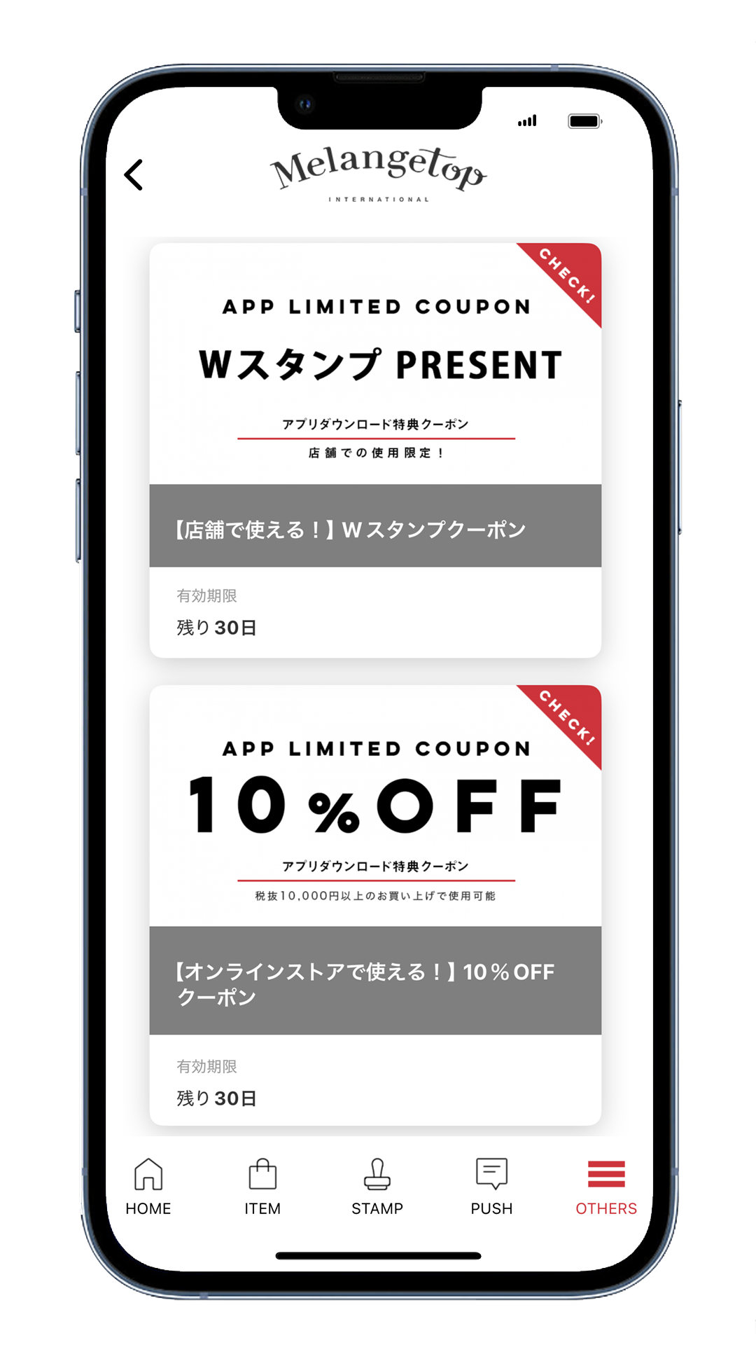 画面右下【OTHERS】をタップして、画面上部の【COUPON】をクリック