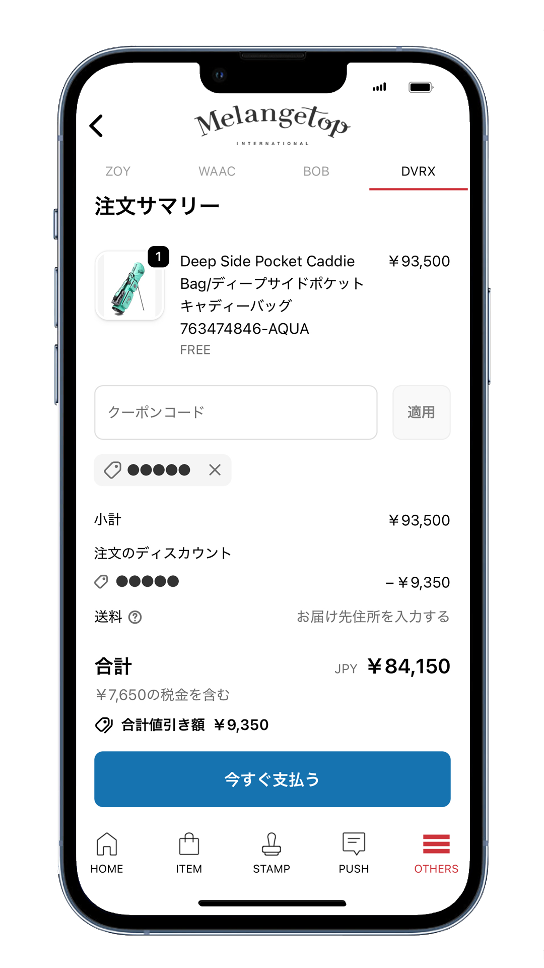 COUPON取得は最短1分で完了。割引適用金額に上限はなく、